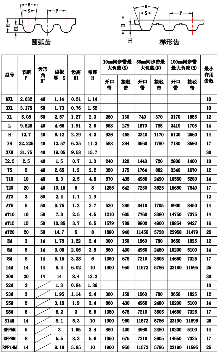 同步帶參數表(biǎo)